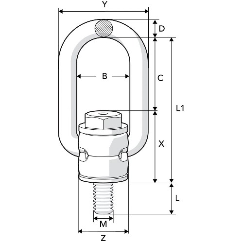 Decentrerat lyftfäste, konstruerat så att bygeln kan fällas ned över huset så att fästet tar minimal plats när det inte används. Bygeln har också en "stay-up"-funktion (upp till M24) vilket både gör i-krokningen enklare samt minimerar vibrationer i fästet när lyftet är avklarat. Utmärkt val när utrymmet är begränsat samt för infästning nära kanter på lasten, tack vare sin kompakta konstruktion.