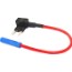 Säkringshållare och skyddskrets för flatsäkringar Midi. Enkelt sätt att addera en skyddskrets. Består av 100 mm röd kabel, 1,3 mm² (AWG 16) med blå rundstiftshylsa och stadig säkringshållare av polyamid.