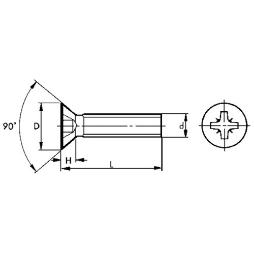 Helgängad krysspårskruv med försänkt skalle. Pozidrive. DIN / ISO Norm: DIN 965 A/ISO 7046. Helgängad.